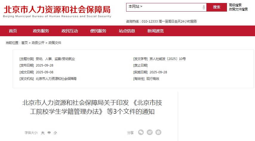 近日,北京市人力资源社会保障局出台《北京市技工院校学生学籍管理办法》《北京市技工院校教学管理办法》《北京市技工院校学生实习就业管理办法》3项管理制度,实现从招生入学到毕业就业的全过程规范化管理,为技工院校提供清晰的操作指引,有助于进一步激发办学活力,推动技工教育与产业需求深度融合。