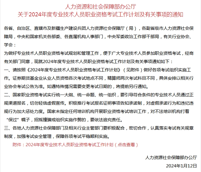 附件:2024年度专业技术人员职业资格考试工作计划(点击查看)
